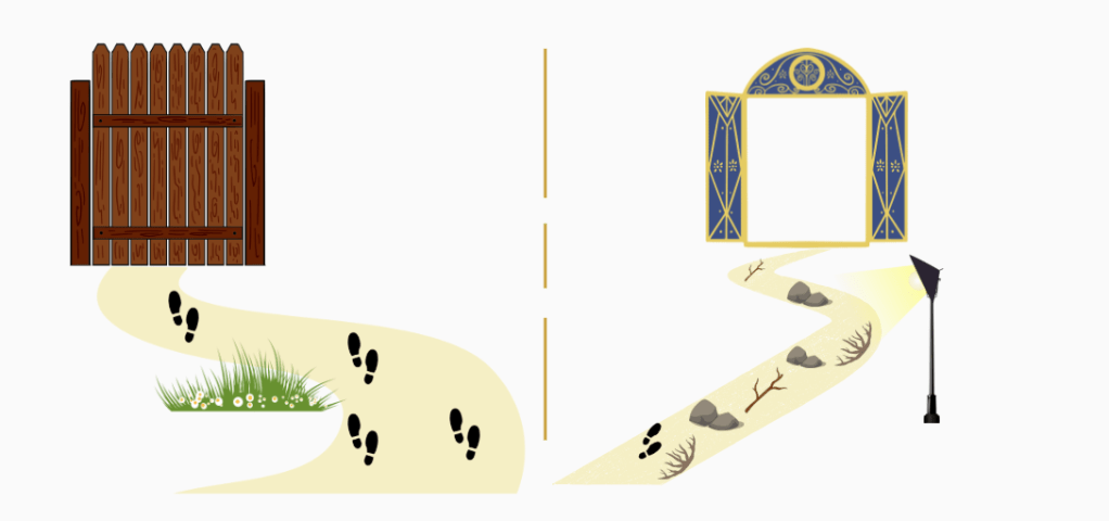 I imagined two separate paths, one with a wide gate at the end and the other with a narrow gate. Very simple right? Nothing that you’ve probably haven’t seen before on the internet as a Christian illustration.